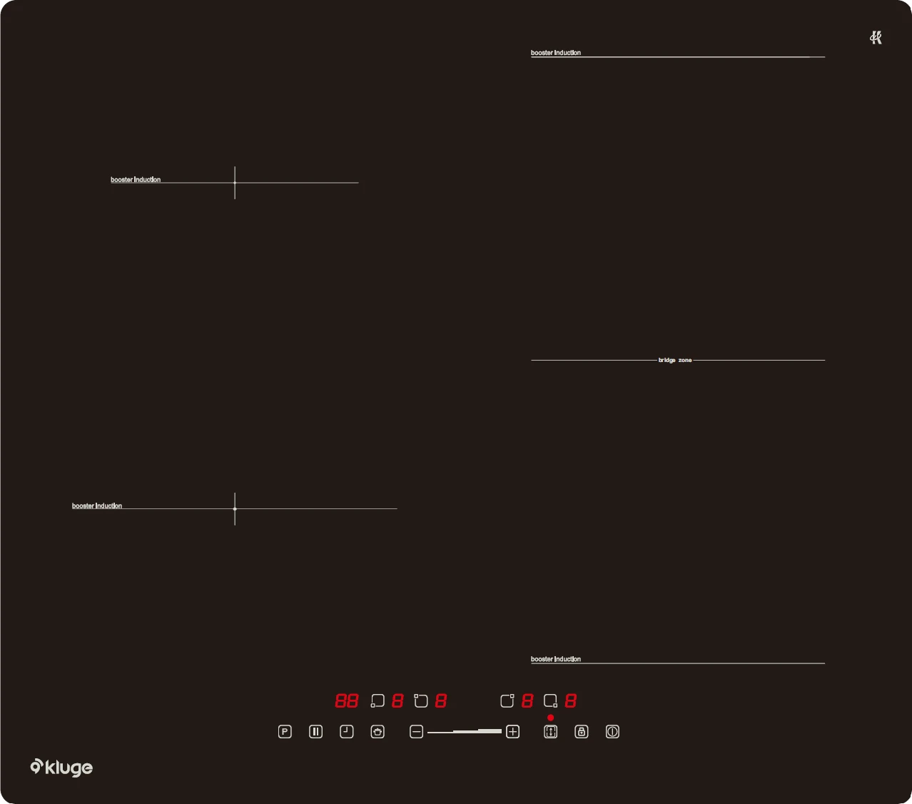 - Povrch z čierneho skla s rovným okrajom ● Bridge zóna