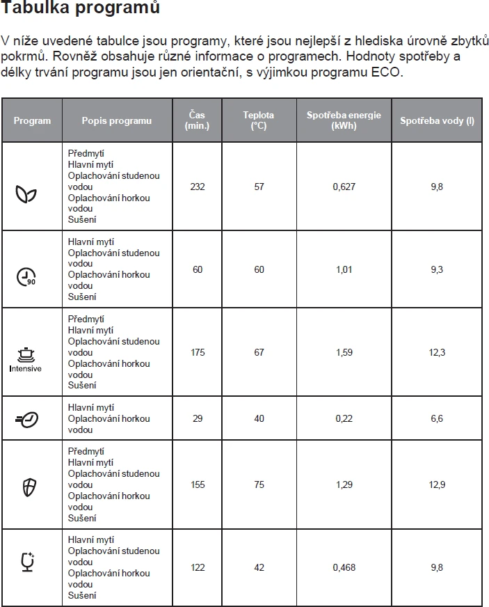 - Spotreba energie (100 cyklov) / vody (cyklus): 63 kWh / 9,2 l