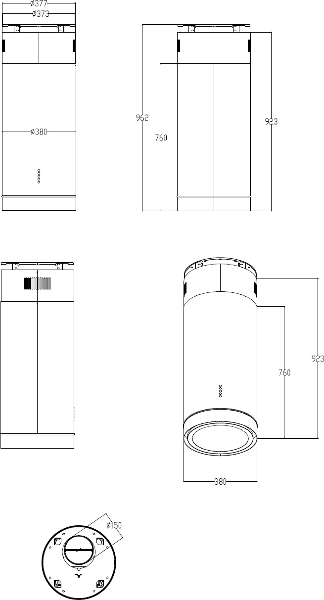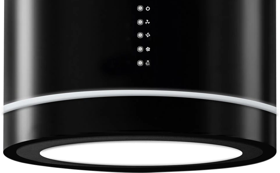 Ostrovčekový odsávač pár s priemerom 38 cm v čiernom kovovom prevedení; Ovládanie je tlačidlové elektronické s podsvietením; K dispozícii sú 3 stupne nastavenia výkonu odsávania + Boost; Typ osvetlenia je 7,5 W so spodným LED panelom a dizajnovým svetelným krúžkom 6 W; Svetlo je možné upraviť nastavením jasu, kde sa dá cyklicky prepínať medzi hodnotami 100 %, 75 % a 50 %; Teplota svetla je tiež nastaviteľná, a to v šiestich krokoch od 3200K (teplá) po 6500K (studená); Výkon odťahu je 250,5 – 485 m³/h (544,9 m³/h v režime Boost); Hlučnosť dosahuje 49 – 64 dB(A) (67 dB(A) v režime Boost); Uhlíkové filtre na recirkuláciu; Trieda energetickej účinnosti A; Ročná spotreba energie 29 kWh; Rozmery (VxŠxH): 92,3 – 96,2 x 38 x 38 cm