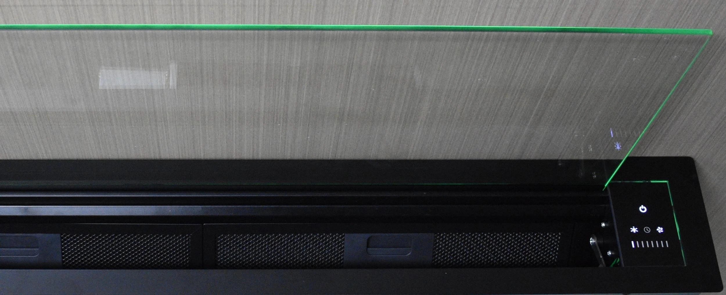 Výsuvný odsávač pár Kluge KLD9500BLG so šírkou 90 cm s výsuvným panelom z číreho skla a inštaláciou priamo do pracovnej dosky; Moderný dizajn a čierne farebné prevedenie v kombinácii s nerezom a čírym a čiernym sklom; Ovládanie dotykové a podsvietené, s ôsmimi úrovňami rýchlosti a špeciálnym režimom Boost; Tento režim sa po 5 minútach automaticky vráti na úroveň 8; Osvetlenie 6 W umožňuje nastavenie farby svetla; Farbu svetla je možné nastaviť v šiestich variantoch: biela, červená, zelená, modrá, žltá, fialová, oranžová, žltozelená; Funkcia odloženého vypnutia s predvoleným nastavením na 5 minút; Výkon odťahu: 302,8 – 629,4 m³/h (696 m³/h v režime Boost); Hlučnosť: 50 – 66 dB(A) (72 dB(A) v režime Boost); Tukový filter je 5-vrstvový hliníkový a vhodný na umývanie v umývačke; Ochrana proti privretiu; Prevádzka je možná v režime recirkulácie s použitím uhlíkového filtra; Trieda energetickej účinnosti A+; Ročná spotreba energie je iba 26,8 kWh/rok; Rozmery (ŠxHxV): 86,8 x 23 x 55,2 cm